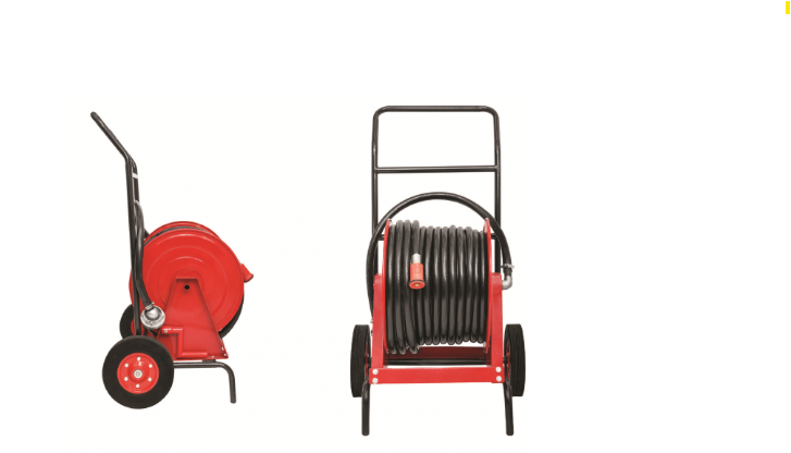 Slöngukefli á kerru sem er auðvelt að flytja og nota af einum aðila.