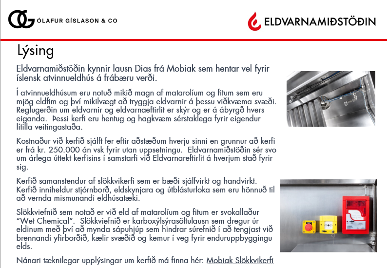 Mobiak Dias - Sjálfvirkt slökkvikerfi fyrir atvinnueldhús