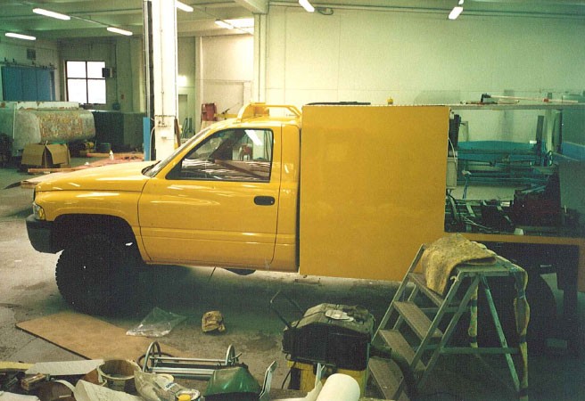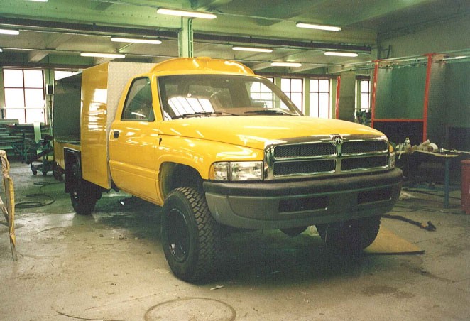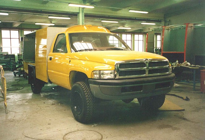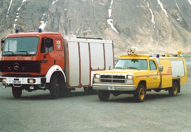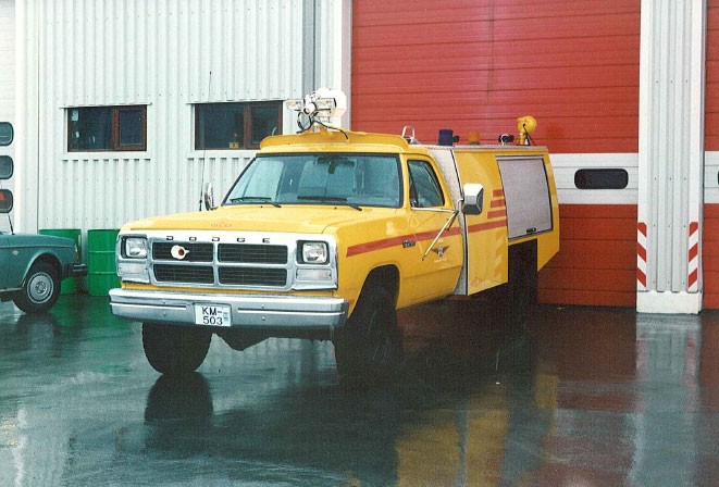Myndir af fyrstu slökkvibifreiðunum sem við fluttum inn frá O.C. Axelsen í Flekkefjörð í Noregi. Rosenbauer búnaður í bifreiðunum. Alls voru þetta fjórar bifreiðar af Dodge gerð.