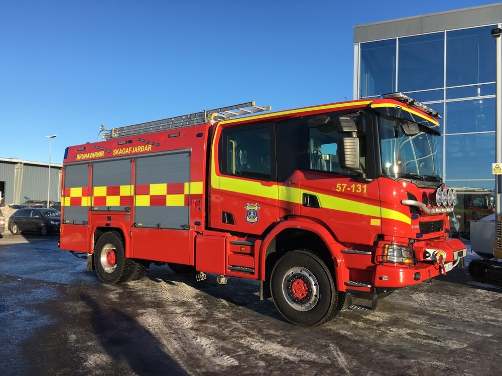 Merkingar: Stafir með nafni slökkviliðs eru uppi á sitthvorri hlið tanks bílsins og í framrúðu eða skyggni bíls, merki slökkviliðs er á sitthvorri hlið bílsins á fremstu rennihurð, neyðarnúmerið 112 er á báðum hliðum bíls á rennihurðum sem eru fyrir miðju. Númer bílsins ( 57 -131 ) er á sitthvorri framhurð bílsins. Sjálflýsandi og endurskin. Battenburg merking á hliðar og sambærilegar rendur að aftan.