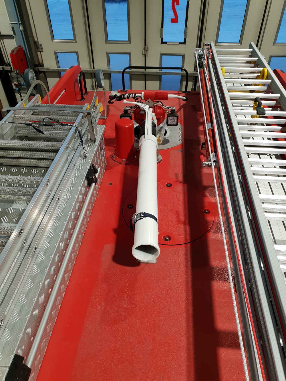 Froðukerfi: Froðukerfi Ruberg RFS240 200 til 4300 l/mín. með full afköst í samræmi við dælu. Around the Pump með íblöndun á öll úttök. Val um 1% til 3% og 6%. Inntak á dælu aftast vinstra megin með Storz 38 kopartengi. Áfylling á froðutank um lok á þaki eða um kopartengið. Einföld loftstýrð skolun.