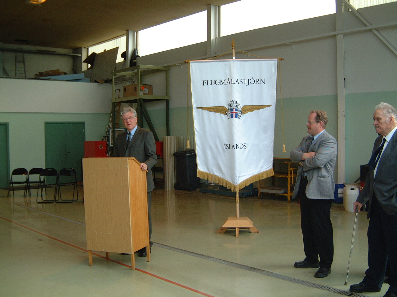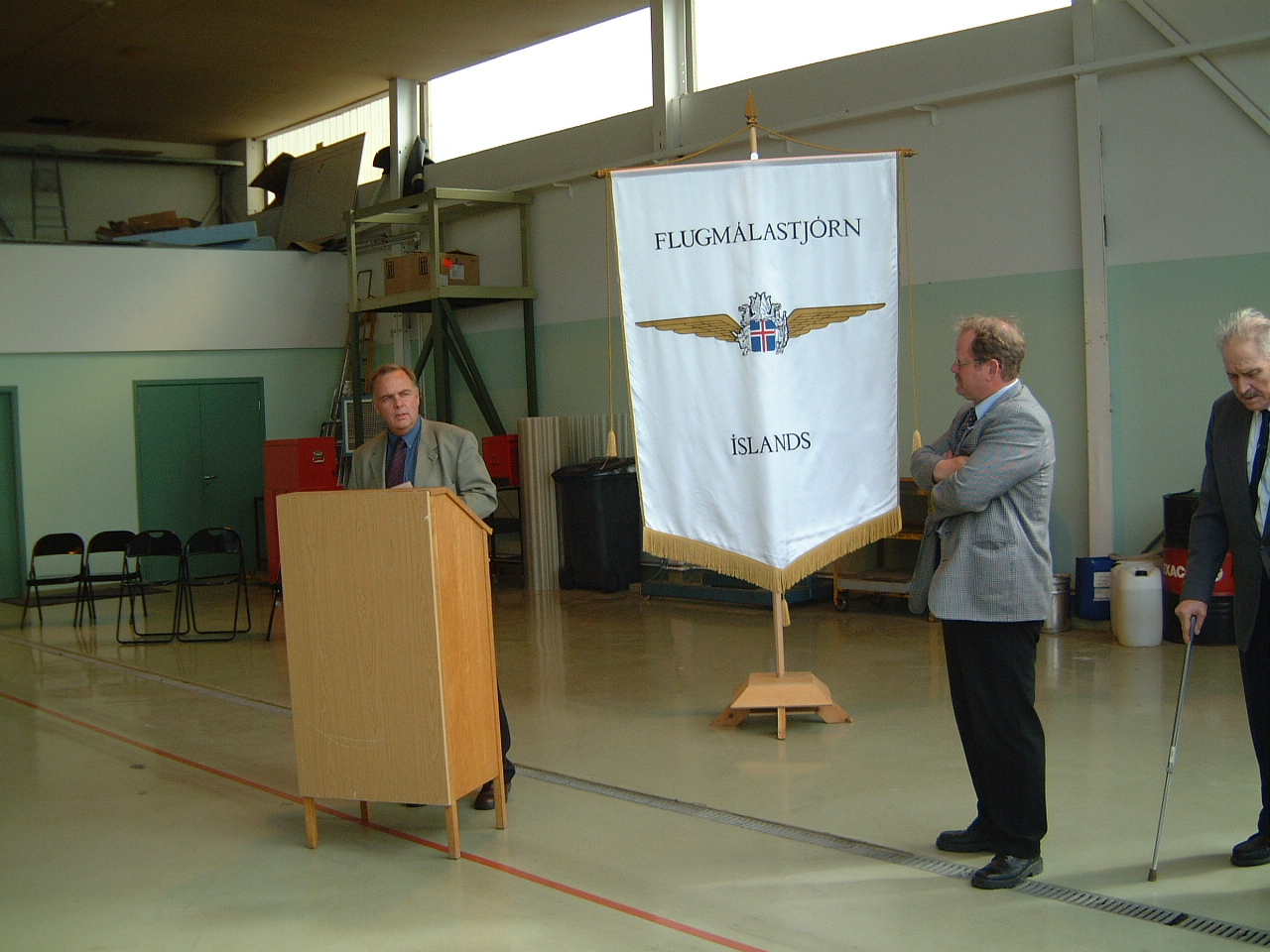 og óskaði Flugmálastjórn til hamingju með nýju slökkvibifreiðarnar. Fleiri stigu í pontu og má þar nefna Þorgeir Pálsson