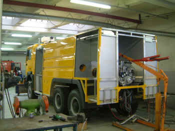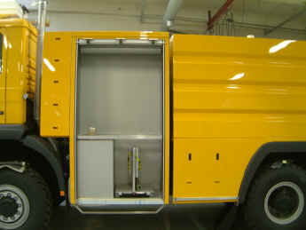 þarf einungis 2 menn. Í yfirbyggingu sem er smíðuð úr áli og plasti er 7.900 lítra vatnstankur og 790 l. froðutankur, Rosenbauer NH40
